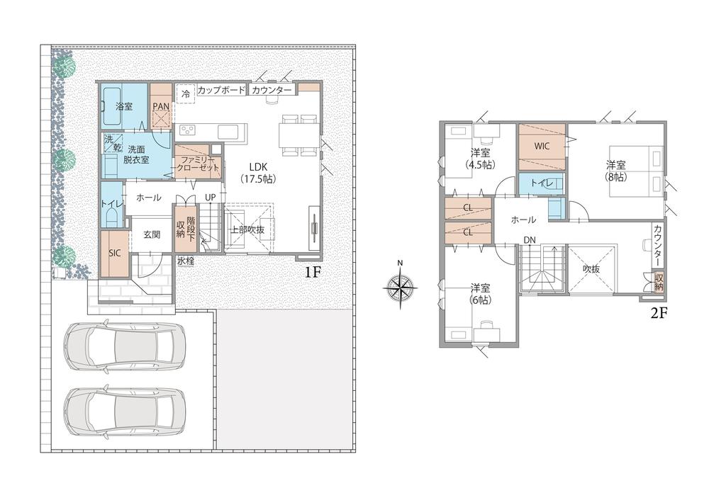 | 建物面積 | 101.85㎡・107.02㎡(30.80坪・32.37坪) | 土地面積 | 170.06㎡・175.38㎡(51.44坪・53.05坪) | ||