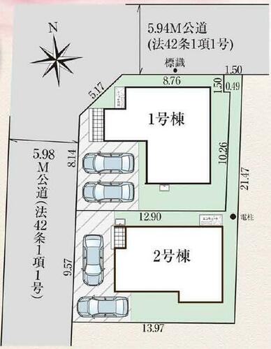 | 私道負担・道路 | - | 道路付け | 西 5.9m 公道北 5.9m 公道 | ||