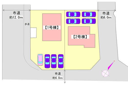 | 私道負担・道路 | - | 道路付け | 北東 6.0m 公道南東 6.0m 公道 | ||