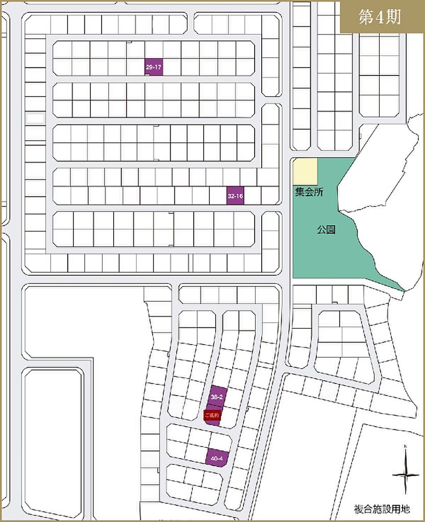| 建物面積 | 79.08m2(29-17号地)、102.68m2(32-16号地)、92.73m2(38-2号地)、104.33m2(40-4号地) | 土地面積 | 229.21m2(29-17号地)、234.78m2(32-16号地)、230.87m2(38-2号地)、246.88m2(40-4号地) 私道負担なし | ||