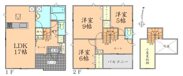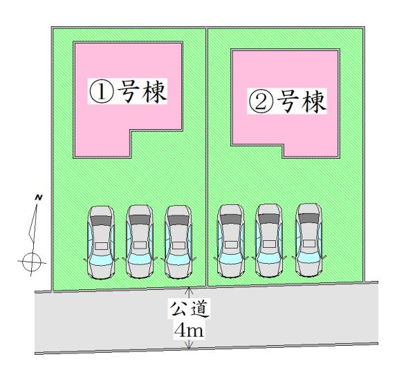 | 建物面積 | 100.44㎡・103.68㎡(30.38坪・31.36坪) | 土地面積 | 174.39㎡・176.08㎡(52.75坪・53.26坪) | ||