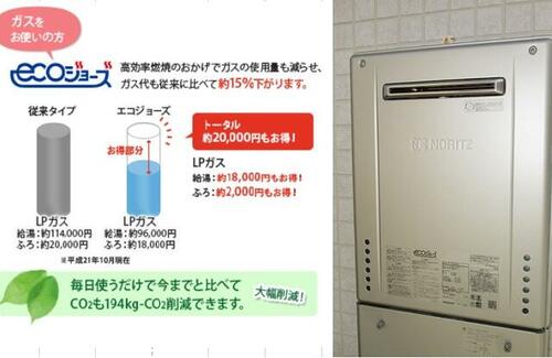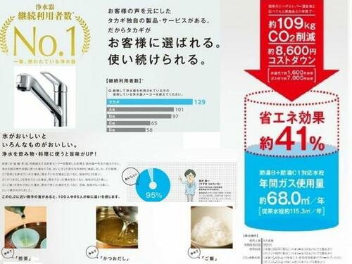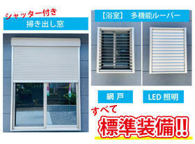 | 設備 | 給湯・収納スペース・追焚機能・プロパンガス・フローリング・照明器具・シャンプードレッサー・ウォシュレット・システムキッチン・カウンターキッチン・モニタ付インターホン・庭・クロゼット・浄水器・複層ガラス・ディンプルキー・電気・上水道・下水道・省エネ給湯器 | ||||