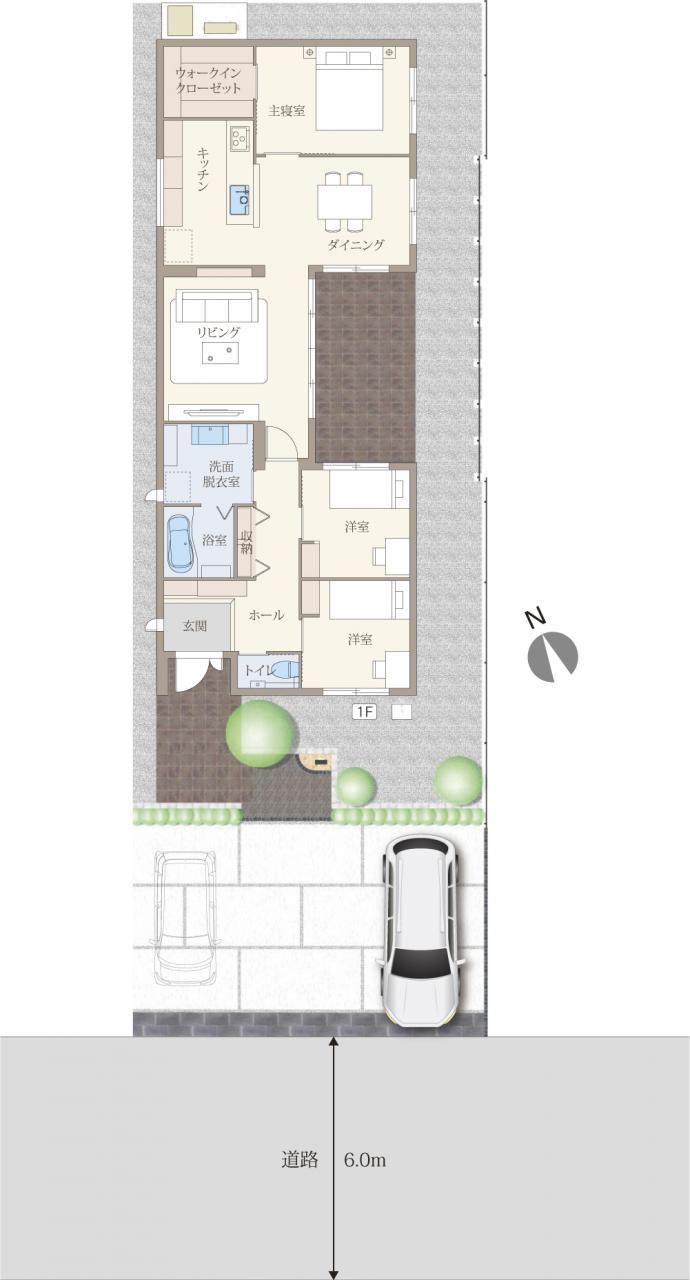 ※建築条件土地の情報内に掲載されている、建物プラン例は、土地購入者の設計プランの参考の一例であって、プランの採用可否は任意です。