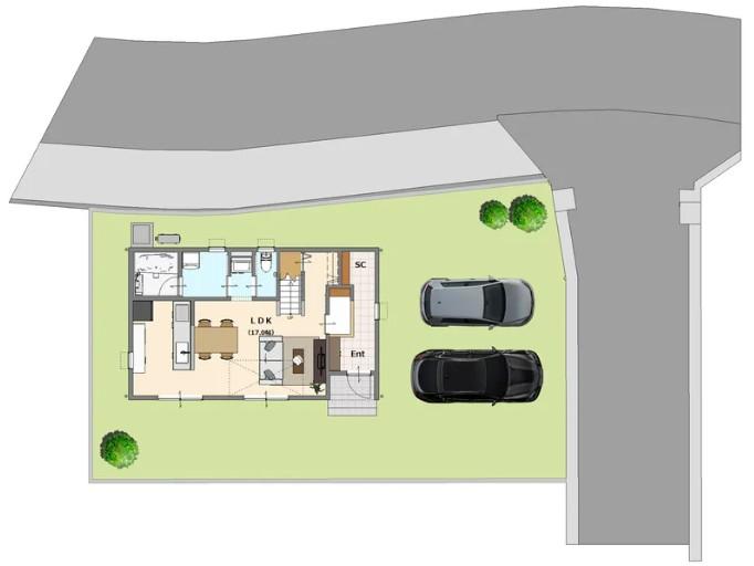 ※土地(建築条件なし)で「建物プラン例」が表記してある時、そのプラン例は特定の建築請負会社によるもので、当該建築請負会社以外で建てた場合、同様のものが同価格で建てられるとは限りません。また建築請負会社を特定するものではありません。