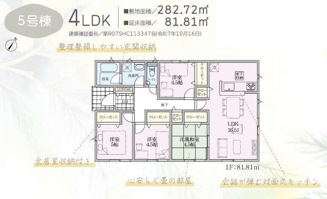 | 建物面積 | 81.81㎡~101.65㎡ | 土地面積 | 173.08㎡~282.72㎡ | ||