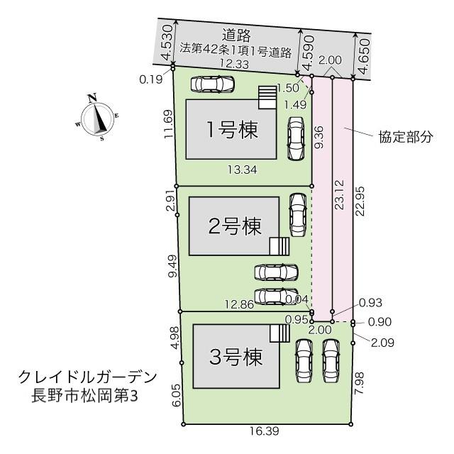 | 建物面積 | 96.39㎡~98.81㎡(29.15坪~29.88坪)(実測) | 土地面積 | 154.19㎡~227.53㎡(46.64坪~68.82坪)(登記) | ||