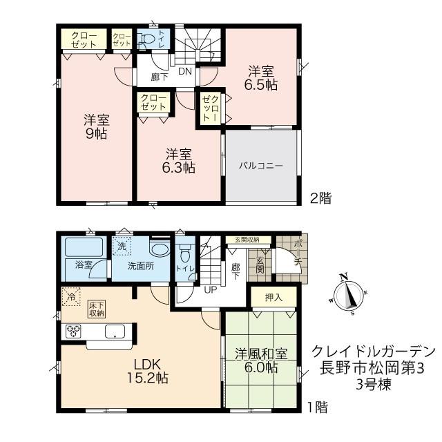 | 設備 | 設計住宅性能評価書 / 建設住宅性能評価書(新築時) / フラット35Sに対応 / 駐車2台可 / 即引渡可 / 省エネ給湯器 / 南向き / システムキッチン / 浴室乾燥機 / 全居室収納 / 閑静な住宅地 / LDK15畳以上 / シャワー付洗面化粧台 / 対面式キッチン / トイレ2ヶ所 / 浴室1坪以上 / 2階建 / 南面バルコニー / 複層ガラス / オートバス / 温水洗浄便座 / 床下収納 / 浴室に窓 / TVモニタ付インターホン / 全居室複層ガラスか複層サッシ / 浄水器 / スマートキー | ||||