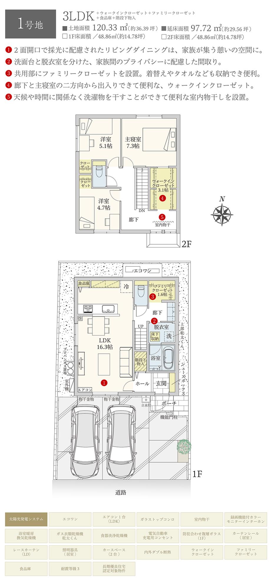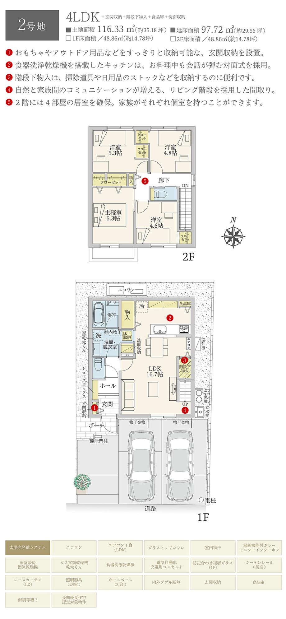 | 建物面積 | 97.72㎡ | 土地面積 | 116.33㎡~120.33㎡ | ||