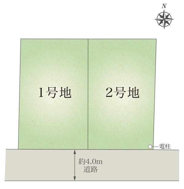 | 地目 | - | 道路付け | 道路幅:4m、アスファルト舗装、(1号地)、(2号地) 全て私道負担なし | ||
