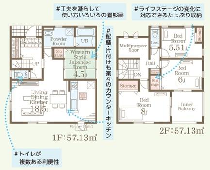 ※土地(建築条件なし)で「建物プラン例」が表記してある時、そのプラン例は特定の建築請負会社によるもので、当該建築請負会社以外で建てた場合、同様のものが同価格で建てられるとは限りません。また建築請負会社を特定するものではありません。