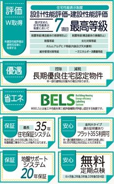 | 設備 | 長期優良住宅認定通知書 / 設計住宅性能評価書 / 建設住宅性能評価書(新築時) / 省エネルギー対策 / 駐車3台以上可 / 即引渡可 / 省エネ給湯器 / 市街地が近い / 南向き / システムキッチン / 浴室乾燥機 / 全居室収納 / 閑静な住宅地 / LDK15畳以上 / 和室 / 庭 / シャワー付洗面化粧台 / 対面式キッチン / バリアフリー / トイレ2ヶ所 / 浴室1坪以上 / 南面バルコニー / 複層ガラス / オートバス / 温水洗浄便座 / 南庭 / 床下収納 / 浴室に窓 / TVモニタ付インターホン / 節水型トイレ / 全居室複層ガラスか複層サッシ / 小学校 徒歩10分以内 / 平坦地 / 食器洗乾燥機 / 周辺交通量少なめ / スマートキー | ||||