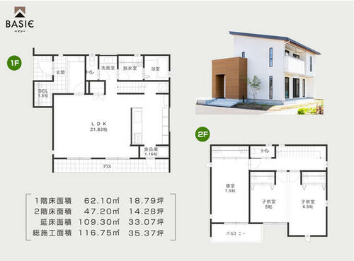 | 建物面積 | 109.29㎡ | 土地面積 | 261.17㎡ | ||