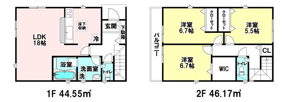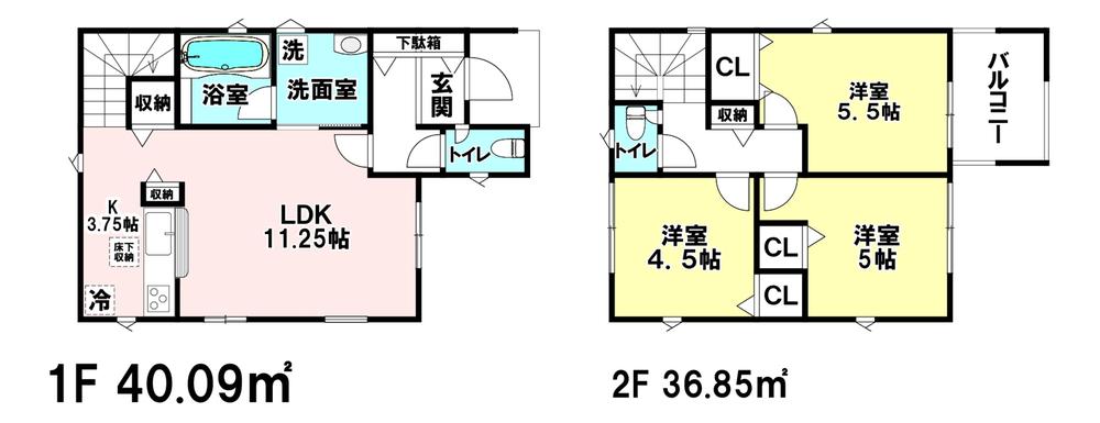 | 建物面積 | 76.94㎡・90.72㎡(実測) | 土地面積 | 86.1㎡・103.72㎡(実測) | ||