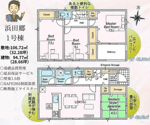 | 建物面積 | 94.77㎡ | 土地面積 | 106.72㎡ | ||