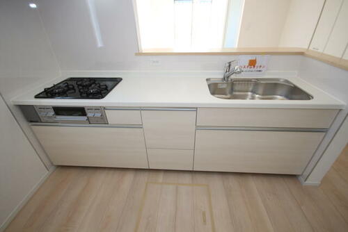 | 設備 | 給湯・バルコニー・収納スペース・追焚機能・都市ガス・浴室乾燥機・Wクロゼット・シャンプードレッサー・ウォシュレット・システムキッチン・カウンターキッチン・モニタ付インターホン・庭・クロゼット・トイレ2ヶ所・ルーフバルコニー・浄水器・複層ガラス・ディンプルキー・電気・上水道・下水道・側溝・防犯カメラ・省エネ給湯器 | ||||