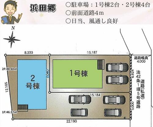 | 私道負担・道路 | - | 道路付け | 東 4.0m 私道 接面6.9m | ||