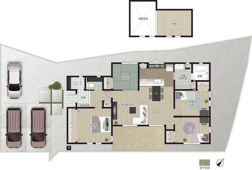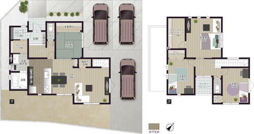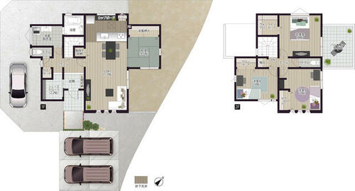| 設備 | エアコン・給湯・バルコニー・収納スペース・追焚機能・浴室乾燥機・Wクロゼット・照明器具・シャンプードレッサー・ウォシュレット・システムキッチン・モニタ付インターホン・トイレ2ヶ所・床下収納・IHクッキングヒータ・浄水器・食器洗浄乾燥機・複層ガラス・ディンプルキー・電気・上水道・下水道・側溝・省エネ給湯器 | ||||