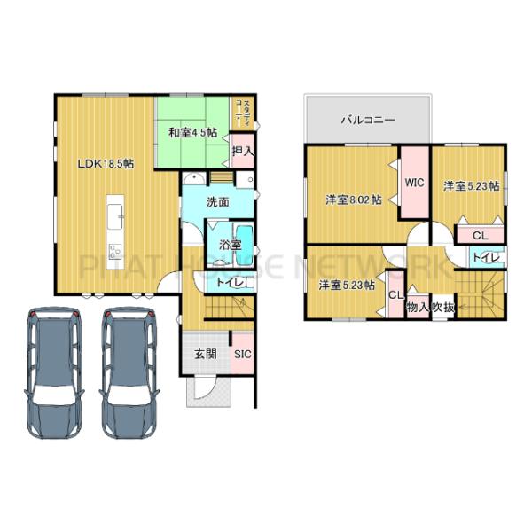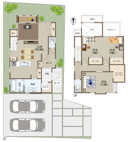 詳細を見る間取り3LDK〜4LDK建物面積105.66m²~107.98m²土地面積土地:134.08m2(1号地)、136.84m2(2号地) 全て私道負担なし 建物:107.98m2(1号地)、105.66m2(2号地)築年月-