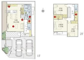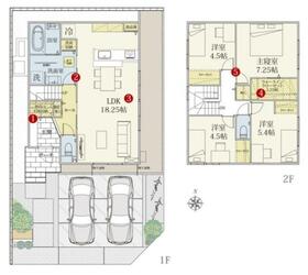 土地面積土地:127.48m2(約38.56坪)〜127.49m2(約38.56坪) 建物:106.55m2(約32.23坪)〜109.18m2(約33.02坪)