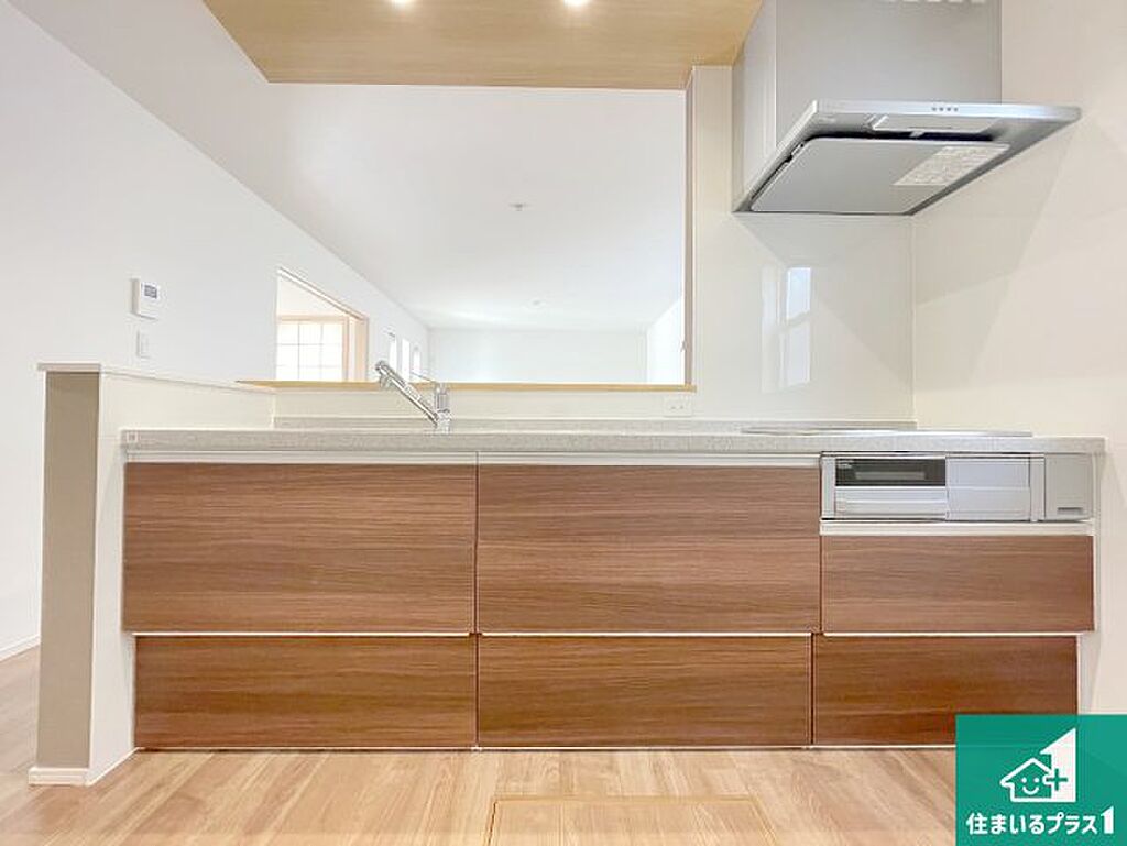 日当たり良好の明るいリビングで朝の目覚めもスッキリできそう!対面キッチンでご家族のコミュニケーションも自然と増える設計!小さなお子様が遊ぶスペースを作っても広々とくつろげるLDK!