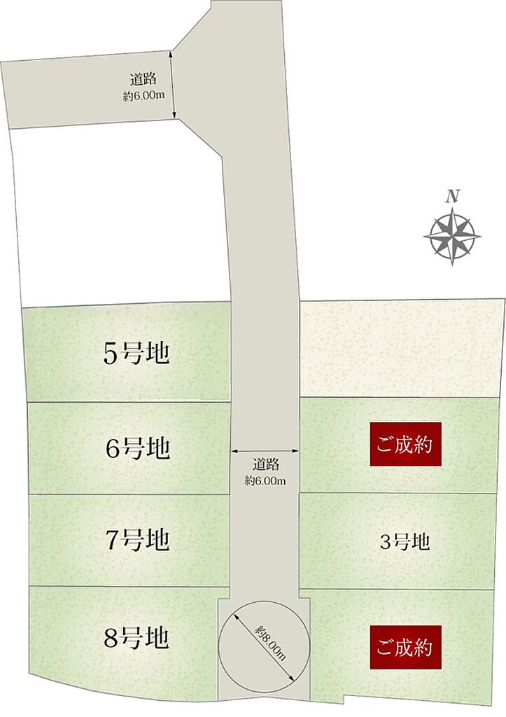 | 間取り | 3LDK(5号地、6号地、7号地)、4LDK(3号地、8号地) | ||||