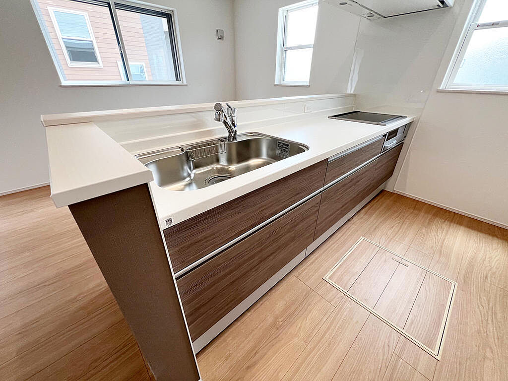 ☆大型のシステムキッチン☆対面式ですので家族と会話しながら楽しくクッキング!!