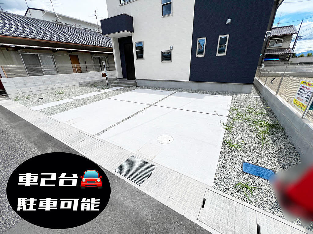 ☆現地外観写真☆FirstTown☆1号棟☆省エネ基準適合住宅☆土地広々48坪☆オール電化☆ガレージ2台☆日当たり良好☆庭・和室☆南面バルコニー☆ならコープ徒歩6分☆網戸・シャッター標準装備☆
