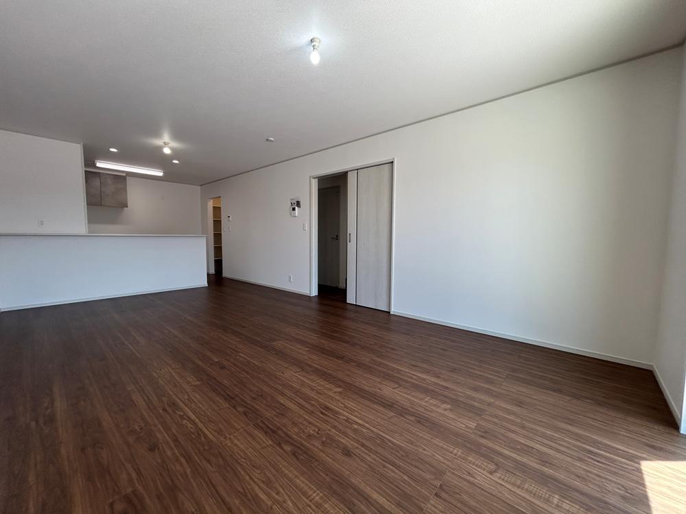 現地写真:LDK(4号棟)※家具はイメージです。現地写真にテーブルやソファなどの家具をCGで配置しています。家具入りのお部屋をご覧いただくことで実際の暮らしを想像していただければと思います。