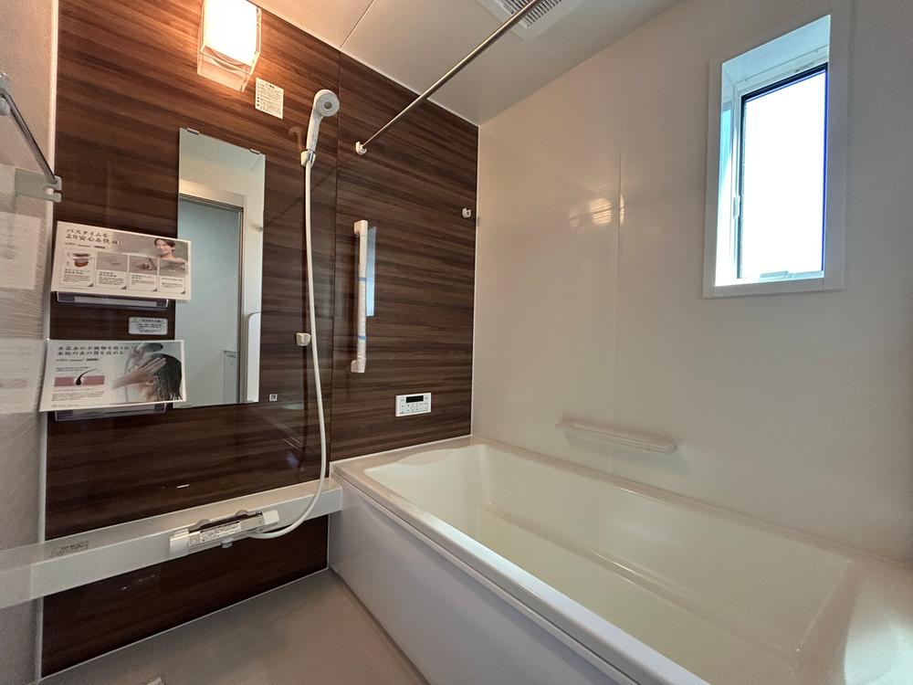 室内(2025年7月)撮影 足を延ばしてゆったりと一日の疲れを癒せるバスルーム。水はけがよく滑りにくい床を使用しているのでお子様やお年寄りも安心して入浴できます。断熱浴槽は追い炊き回数を減らし経済的