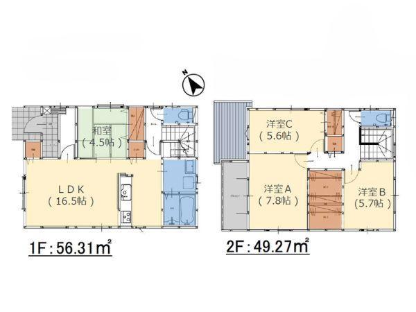 | 建物面積 | 105.58㎡(登記) | 土地面積 | 168.53㎡(登記) | ||