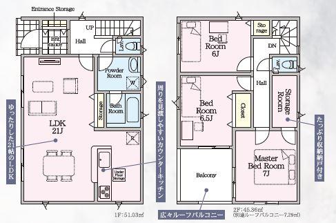 ※土地(建築条件なし)で「建物プラン例」が表記してある時、そのプラン例は特定の建築請負会社によるもので、当該建築請負会社以外で建てた場合、同様のものが同価格で建てられるとは限りません。また建築請負会社を特定するものではありません。
