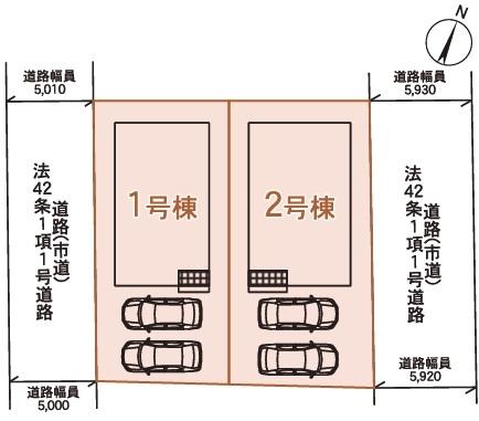 | 建物面積 | 93.15㎡・103.67㎡(28.17坪・31.36坪)(登記) | 土地面積 | 125.81㎡・135.44㎡(38.05坪・40.97坪)(登記) | ||