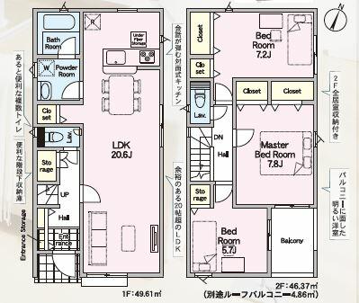 | 設備 | 収納スペース・追焚機能・浴室乾燥機・シャンプードレッサー・ウォシュレット・モニタ付インターホン・クロゼット・トイレ2ヶ所・床下収納・ルーフバルコニー・浄水器・カードキー・複層ガラス・電気・上水道・下水道・防犯カメラ | ||||