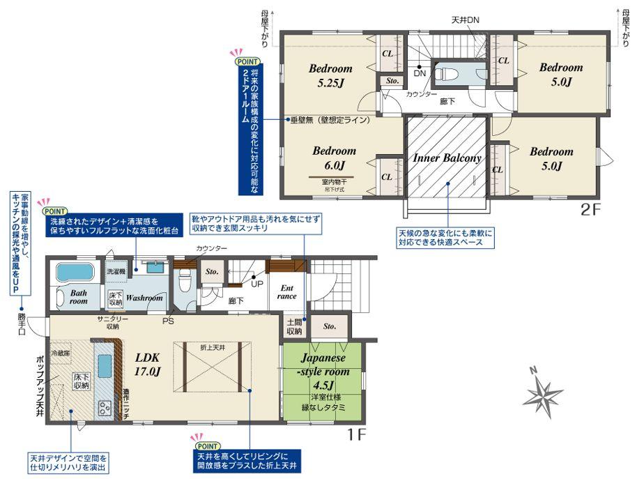 ※建築条件土地の情報内に掲載されている、建物プラン例は、土地購入者の設計プランの参考の一例であって、プランの採用可否は任意です。