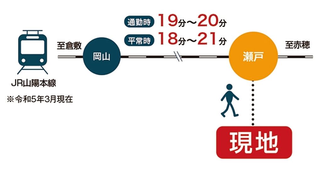 JR山陽本線「瀬戸」駅まで徒歩10分。 医療機関やスーパー等が徒歩圏内にある利便性のよい立地。 閑静な住宅地のため長く住み続けやすい環境です。 | ||||