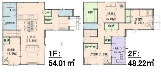 | 建物面積 | 111.37㎡・112.2㎡(33.68坪・33.94坪)(登記) | 土地面積 | 137.53㎡・169.57㎡(41.60坪・51.29坪)(登記) | ||