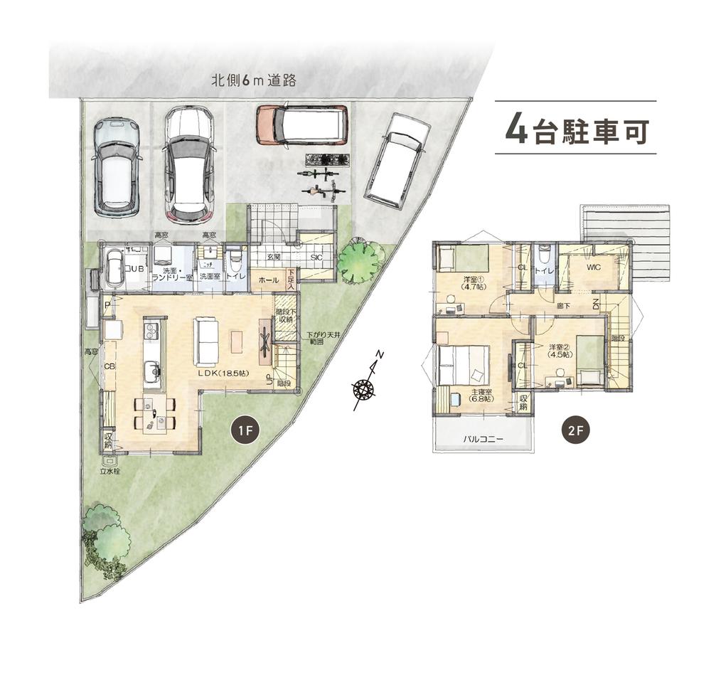 ※土地(建築条件なし)で「建物プラン例」が表記してある時、そのプラン例は特定の建築請負会社によるもので、当該建築請負会社以外で建てた場合、同様のものが同価格で建てられるとは限りません。また建築請負会社を特定するものではありません。