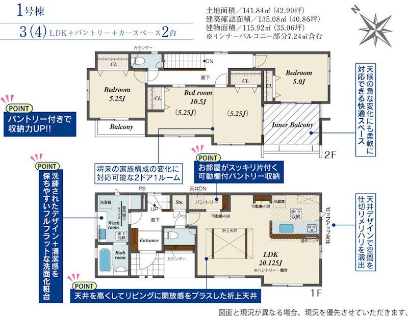 | 建物面積 | 115.92㎡(35.06坪)(登記) | 土地面積 | 141.84㎡(42.90坪)(登記) | ||