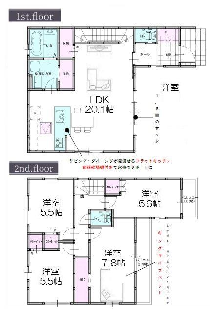 ※土地(建築条件なし)で「建物プラン例」が表記してある時、そのプラン例は特定の建築請負会社によるもので、当該建築請負会社以外で建てた場合、同様のものが同価格で建てられるとは限りません。また建築請負会社を特定するものではありません。