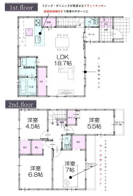 | 設備 | 駐車2台可 / 即引渡可 / LDK18畳以上 / スーパー 徒歩10分以内 / システムキッチン / 浴室乾燥機 / シャワー付洗面化粧台 / 対面式キッチン / ワイドバルコニー / トイレ2ヶ所 / 浴室1坪以上 / 2階建 / オートバス / 温水洗浄便座 / 床下収納 / 浴室に窓 / TVモニタ付インターホン / 節水型トイレ / 全居室フローリング / 全居室複層ガラスか複層サッシ / 都市ガス / 小学校 徒歩10分以内 / 食器洗乾燥機 / 浄水器 | ||||
