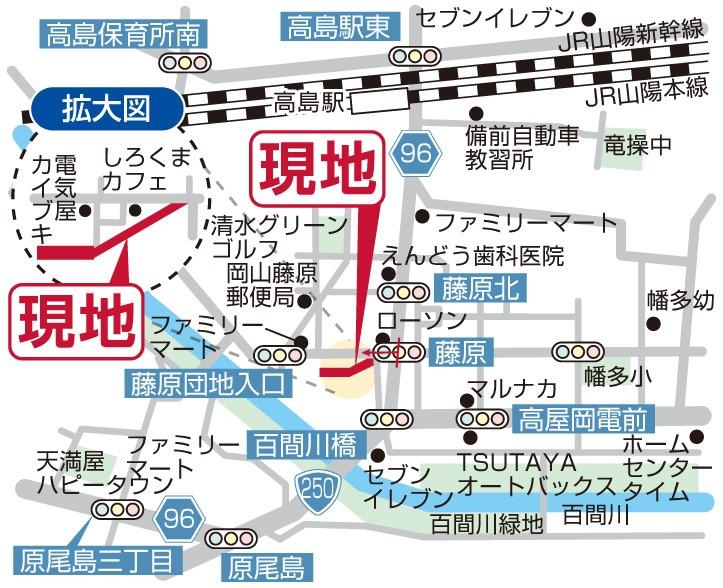 JR山陽本線「高島」歩14分 宇野バス「藤原バス停」歩4分 岡電バス「団地入口」歩5分 | ||||