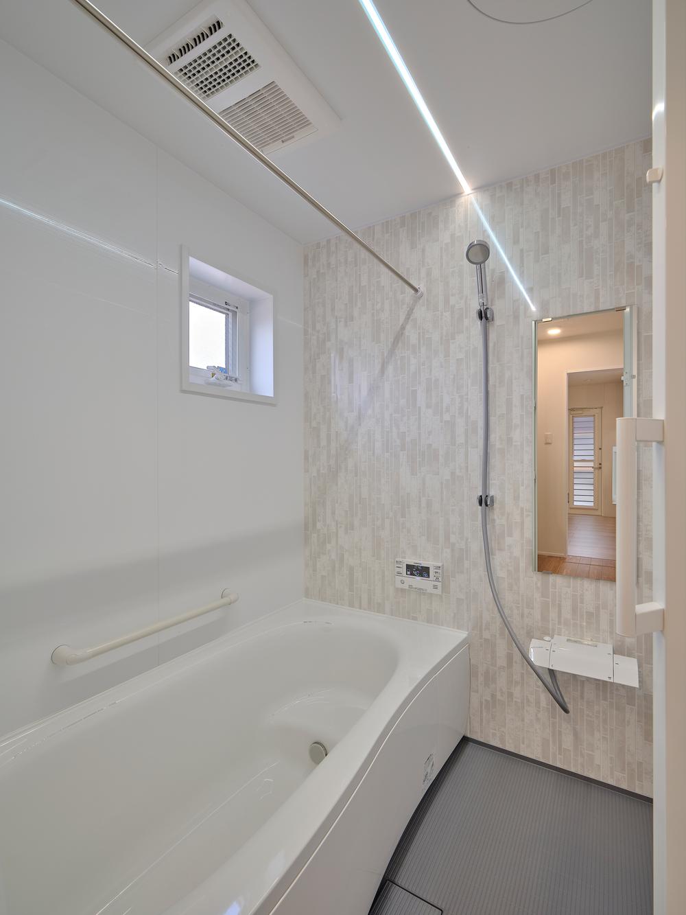 一日の疲れを癒す場所だからこそ、心地よさにこだわりたい。Panasonicのオフローラシリーズを採用したバスルームは、スミピカフロアを採用した滑らかな床材と汚れに強い壁面で、毎日のお手入れも簡単。ゆったりとした浴槽で、家族みんながくつろげる時間を。暖房・乾燥機能も備え、冬でも快適。“お風呂が楽しみになる家”が、ここにあります。