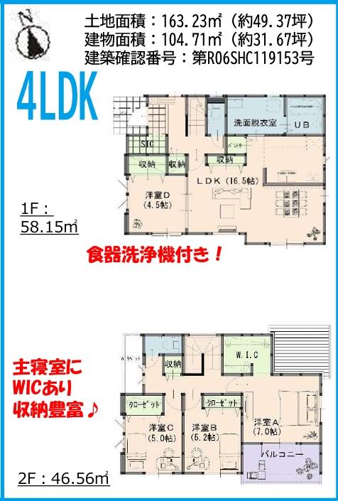 | 建物面積 | 104.71㎡~105.78㎡ | 土地面積 | 163.24㎡~180.24㎡ | ||