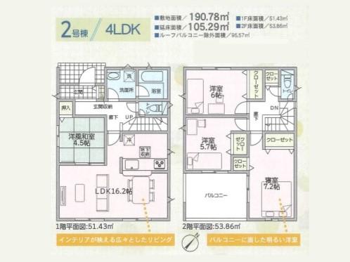 建物面積 | 105.29㎡(31.85坪) | 土地面積 | 190.78㎡(57.71坪) | ||