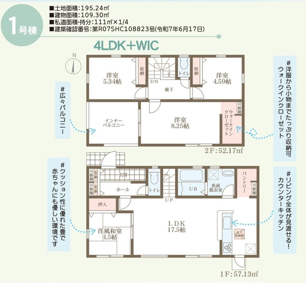 建物面積 | 105.16㎡~109.3㎡(31.81坪~33.06坪)(登記) | 土地面積 | 195.24㎡~206.29㎡(59.05坪~62.40坪)(登記) | ||