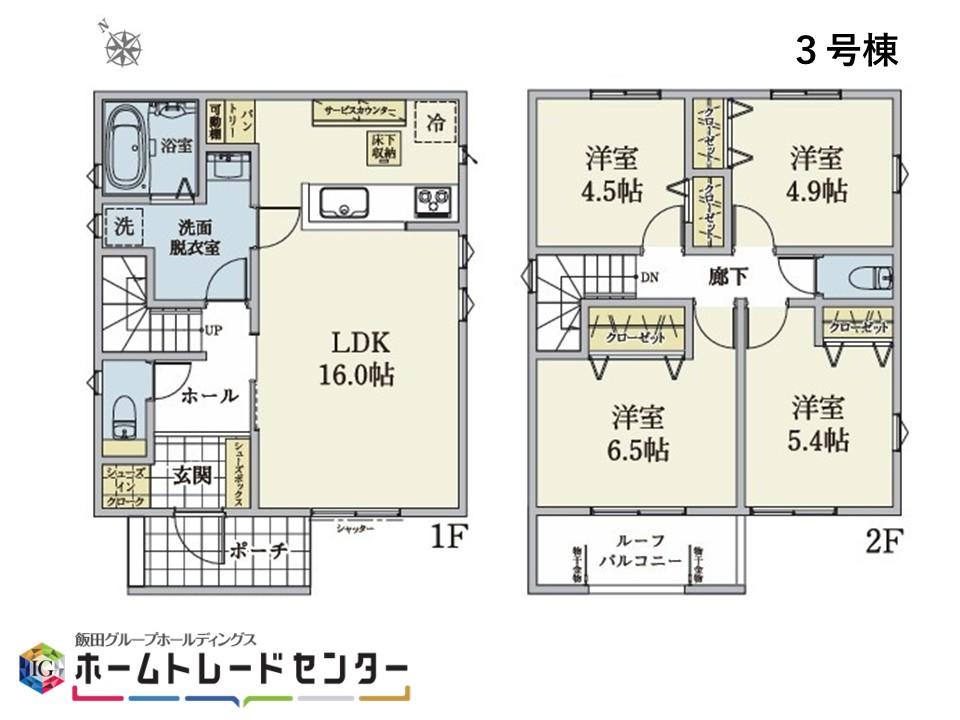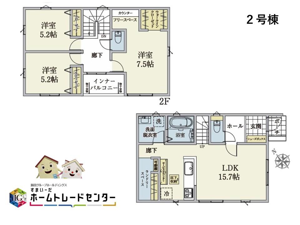 ※土地(建築条件なし)で「建物プラン例」が表記してある時、そのプラン例は特定の建築請負会社によるもので、当該建築請負会社以外で建てた場合、同様のものが同価格で建てられるとは限りません。また建築請負会社を特定するものではありません。