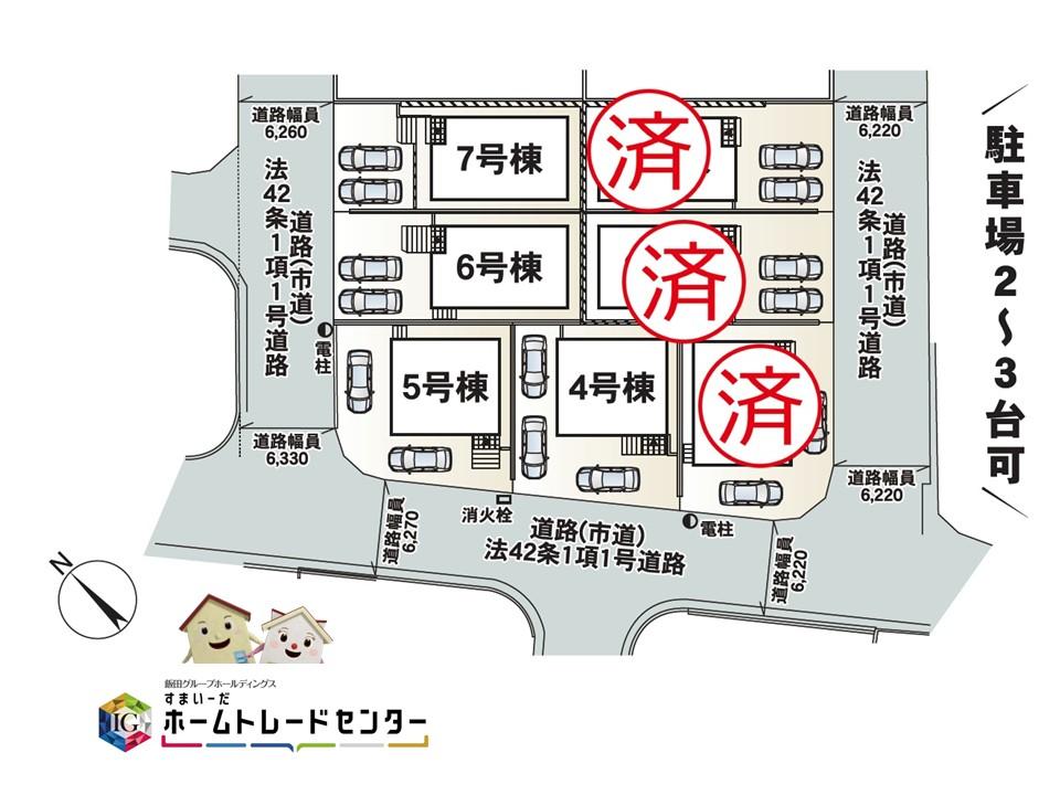 | その他制限事項 | 4号棟:【その他制限事項】絶対高さ制限10m 5号棟:【その他制限事項】絶対高さ制限10m 角地緩和による建ぺい率 6号棟:【法令】敷地内段差有【その他制限事項】絶対高さ制限10m 駐車台数は車種による | ||||