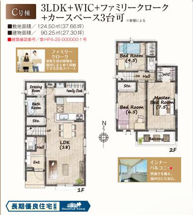 | 建物面積 | 90.25㎡(実測) | 土地面積 | 124.5㎡(実測) | ||