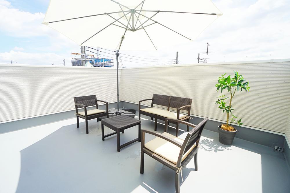 【プライベートテラス/施工事例】周囲の目を気にせずにゆったり過ごせるプライベートテラス。リビングの延長上に設ければ、小さなお子様やペットが遊ぶ姿を見守りながら効率よく家事もできそうです◎