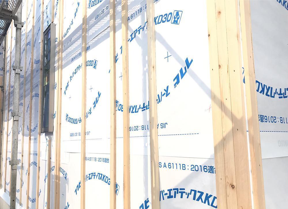 【硬質ウレタンフォーム吹付断熱材】魔法瓶のような住まいを実現する、硬質ウレタンフォーム吹付断熱を標準採用。隙間なく充填された断熱材が、室内温度を一定に保ち、一年を通して快適な住環境を実現します。